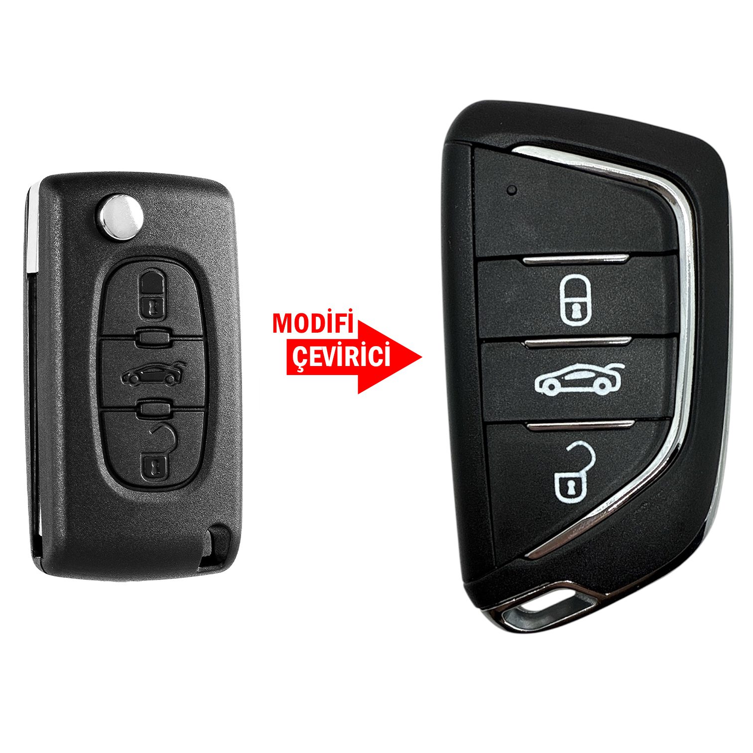 Peugeot 3 butonlu sustalı kumanda kabınız zamanla yıprandıysa bu kaliteli yedek anahtar kabı ile yenileyebilirsiniz. HU83 anahtar bıçağına ve pil yataklı yapıya sahip olan bu model, eski kumandanızdaki elektronik devre ve çipi taşıyarak kolayca kullanılabilir.
