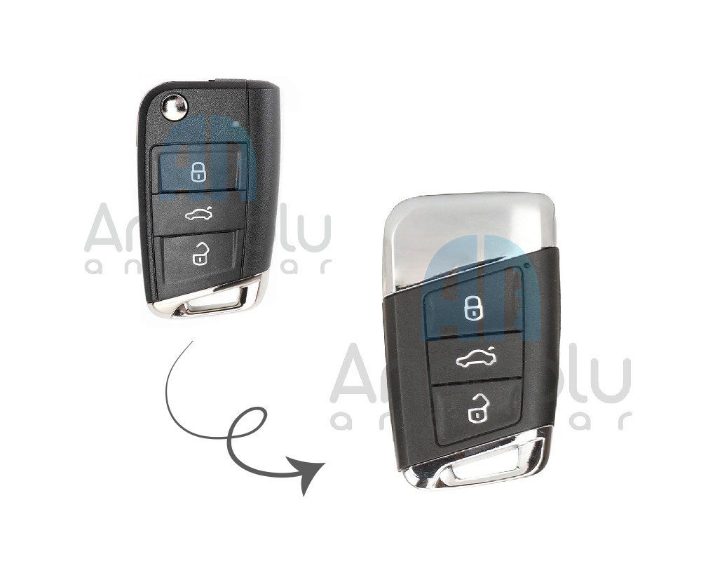 2837 | VW MQB Sustalı Çevirici Kumanda B8 Tipi Ellerserbest 3 Buton 433MHz Yan Sanayi